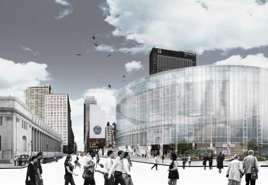 Beyond the specifics of the building however, this proposal provides the opportunity to reimagine the entire neighborhood as a destination rather than a repellent, with a new Madison Square Garden, new office, housing and hotels, new eateries, a small public park, all at the heart of our city. At the center of the new district will be a grand public space without a grand public price tag, a chance to reaffirm our belief in civic infrastructure and our shared public realm.