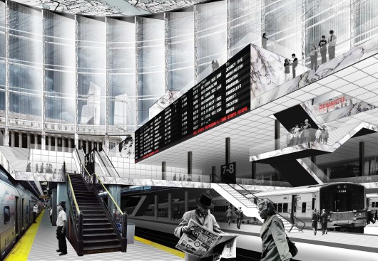 Our proposal imagines the station as a new public commons, a civic space both sober and soaring, an idea born out of architectural restraint during a time that asks us to do more with less. By proposing to recycle the superstructure and foundations of Madison Square Garden once the Garden has a beautiful new home 800' away in the west end of the Farley building, our proposed station creates a grand commuter pavilion at minimal public cost and disruption. This new commuter pavilion reinforces other proposals for the area, including an Amtrak station in the east end of the Farley building, improved entrances and concourses to the north and west, and most importantly, the tracks and platforms proposed to be built to the south as part of the Gateway tunnel project. The definition of success is new capacity, a new station, and a new neighborhood.